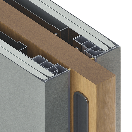 Пенал, предназначенный для установки в оштукатуренный проём двух полотен, сдвигающихся в центр. Подходит для монтажа в стены толщиной до 150 мм. Может использоваться при новом строительстве или ремонте.